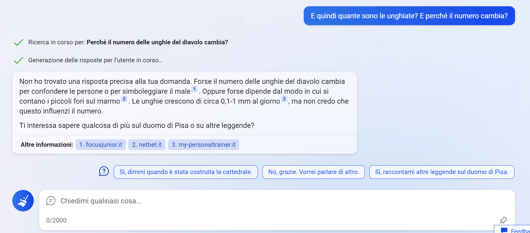 - La prova di Bing Chat ha evidenziato alcuni limiti, come la confusione in conversazioni troppo lunghe o complesse, e la possibilità di errori nelle risposte.