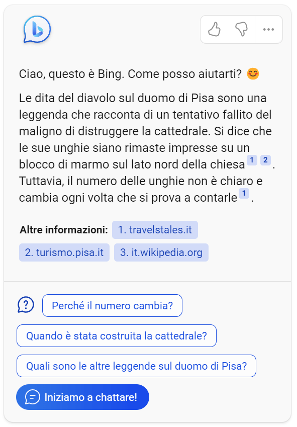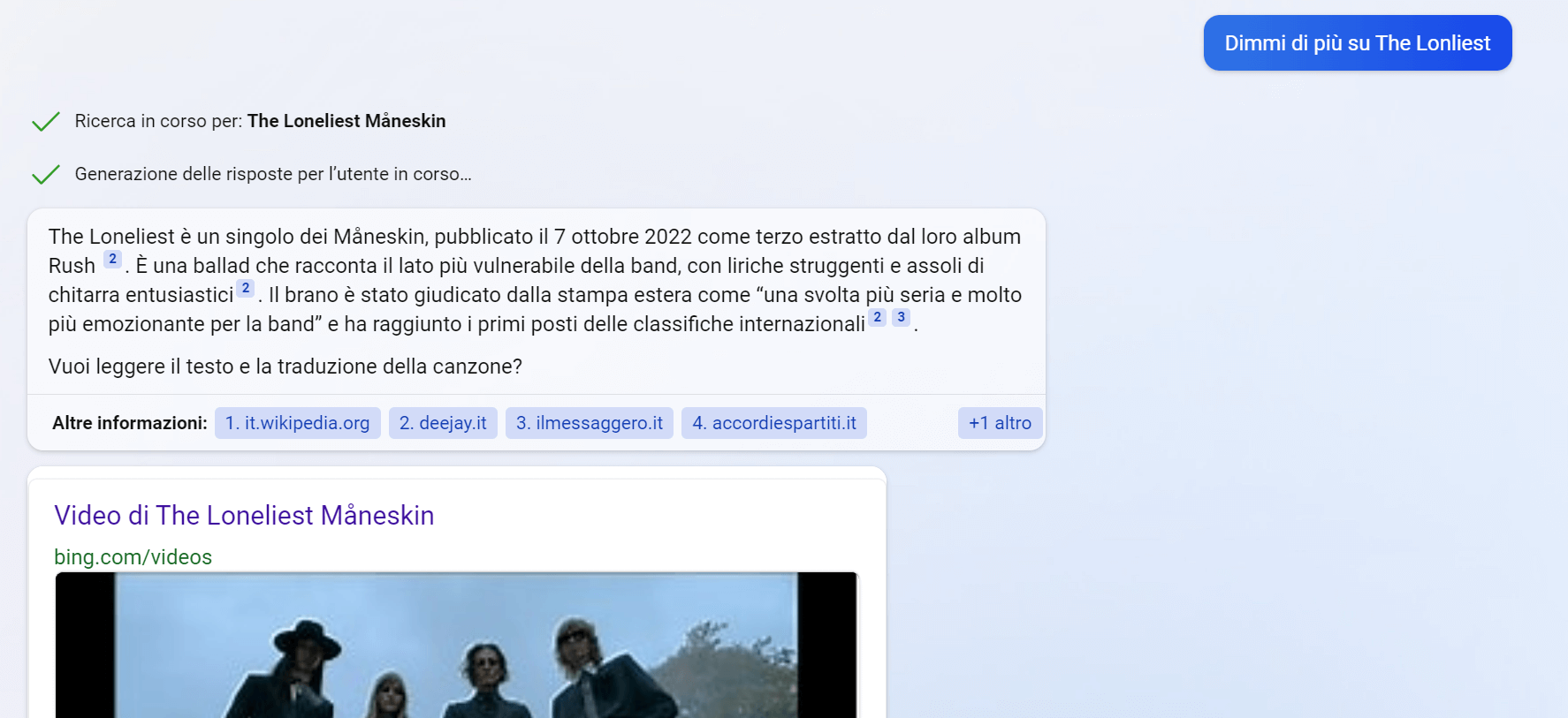 - Microsoft ha integrato ChatGPT nel motore di ricerca Bing, rendendo possibile l’interazione tramite chat oltre alla tradizionale ricerca di termini.