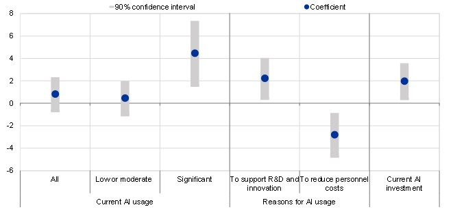 Nel complesso, i dati indicano che, allo stato attuale, l’intelligenza artificiale non sta sostituendo in modo significativo i lavoratori nell’area euro. Anzi, le imprese che investono e utilizzano intensamente l’AI tendono ad assumere di più.