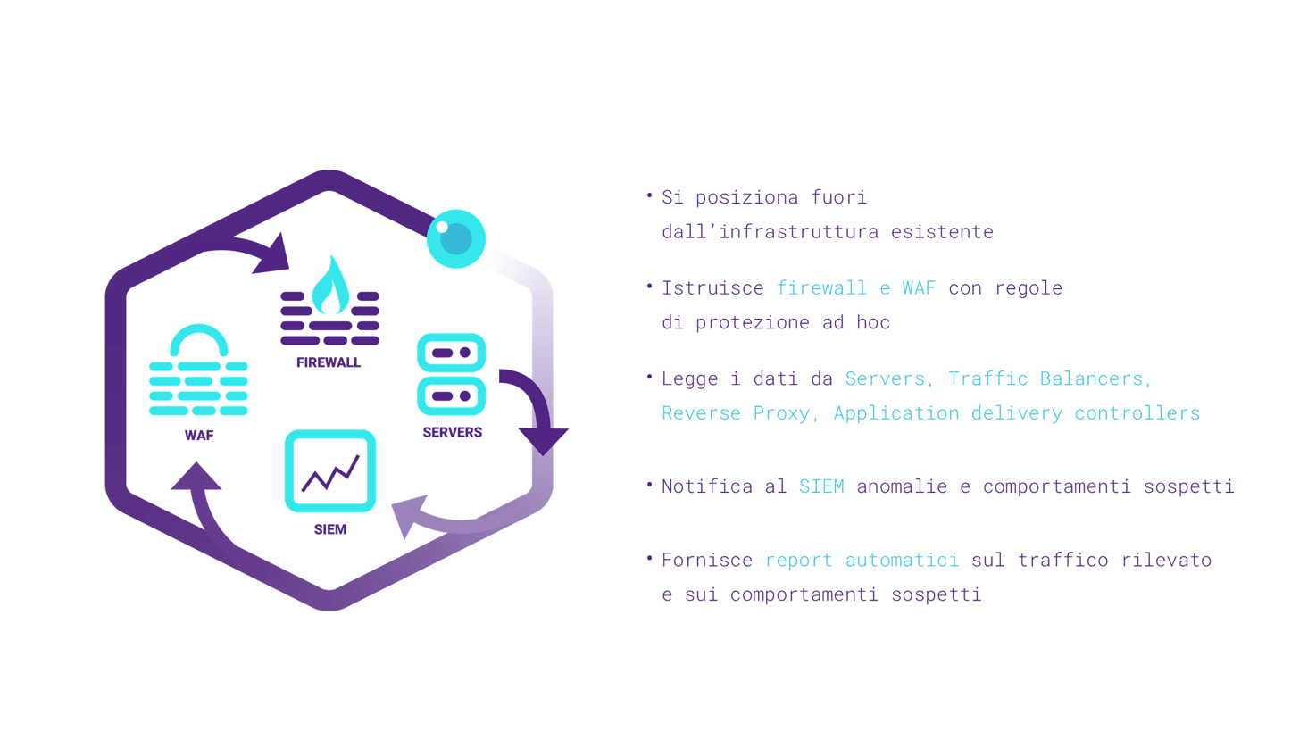 Si tratta di un prodotto innovativo definito come un Web Application Security Manager, a sottolineare l’ambizione del prodotto di diventare la soluzione di riferimento per la sicurezza applicativa in quanto progettata per interfacciarsi con le soluzioni che possono essere utilizzate nelle varie fasi del ciclo di vita dell’applicazione (i.e.: dallo sviluppo del software fino alla fase di produzione) in modo da essere costantemente monitorata e protetta dai cyber attack.