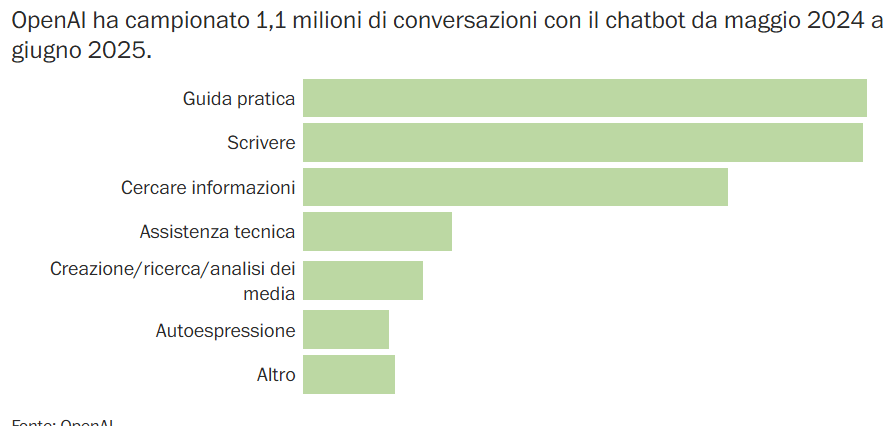 OpenAI ha pubblicato il primo studio dettagliato sul profilo e sui comportamenti degli utenti di ChatGPT. I dati sono stati raccolti da 1,5 milioni di conversazioni (log della chat) tra maggio 2024 e giugno 2025.