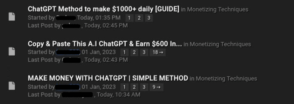 Thread multipli nei forum sotterranei su come utilizzare ChatGPT per attività fraudolente