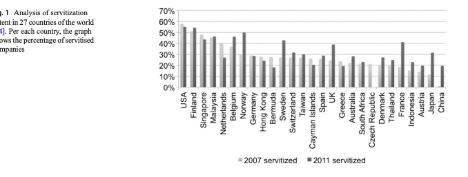 Come si può vedere, già 10 anni fa le aziende che si erano convertite a modelli di servitizzazione si attestavano intorno al 50% del totale a livello mondiale.