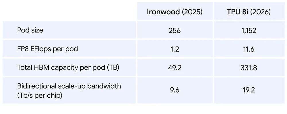 TPU 8i affronta questo problema combinando 288 GB di memoria ad alta banda con 384 MB di memoria SRAM integrata nel chip, tre volte superiore alla generazione precedente.