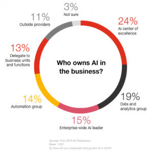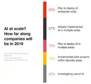 Il 20% dei business executive dichiara che le loro organizzazioni pianificano di implementare l’IA a livello di impresa (enterprise-wide) nel 2019 distribuendola in tutte le aree operative con il risultato di operazioni di business potenziate.