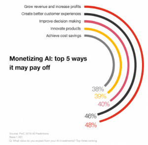 Molte aziende stanno già utilizzando l’intelligenza artificiale per migliorare le operazioni e l’esperienza cliente. Ma nel 2019, alcune di loro pianificheranno o svilupperanno nuovi modelli di business basati sull’IA e indagheranno sulle nuove opportunità di guadagno.