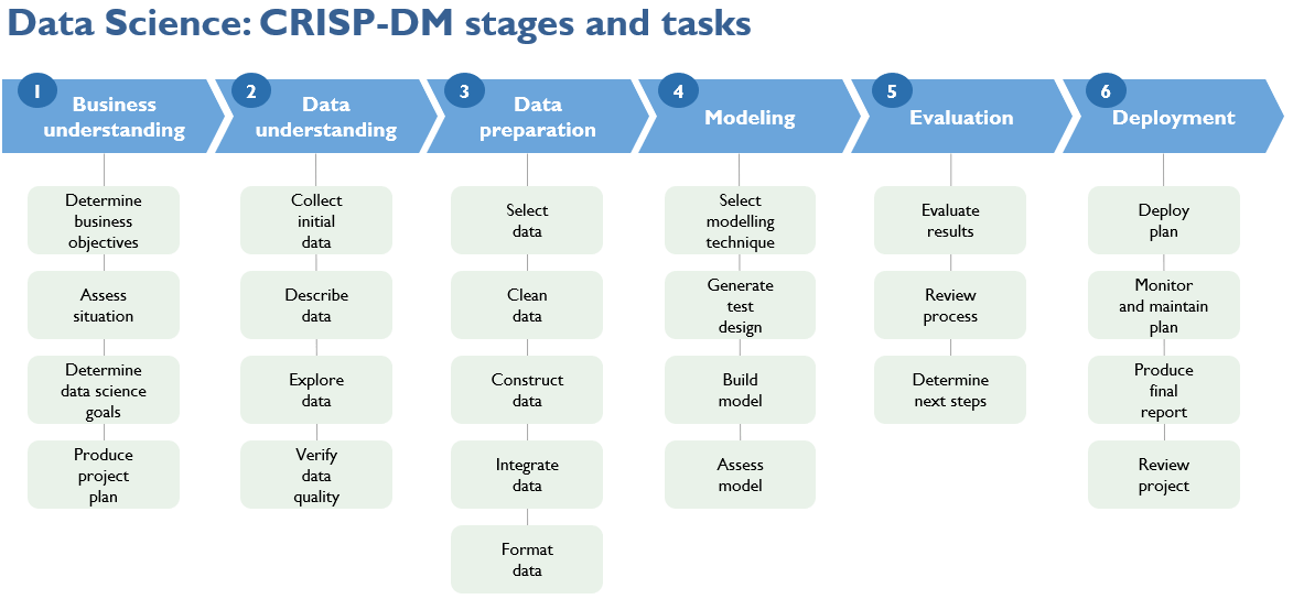 La data science è in realtà un viaggio, un percorso interdisciplinare che, come insegna la metodologia Cross Industry Standard Process for Data Mining (CRISP-DM) [2], muove i primi passi attraverso 3 step iniziali, che non è possibile saltare, nemmeno se si dispone del silver bullet dato dal 58mo, più recente e più performante algoritmo di machine learning: business understanding, data understanding, data preparation. È necessaria la competenza di dominio e, oltre alla raccolta di dati di qualità, la consapevolezza degli stessi e di come trarne valore. E non a caso è ampiamente riconosciuto in letteratura che circa l’80% del tempo di un progetto di data science viene impiegato in tali prime fasi, mentre le successive di data modeling, evaluation e deployment richiedono scienza e tecnica, oltre all’immancabile ricorso al business per la necessaria validazione. È la chiave di volta per le aziende data-driven. Ed è anche una grande sfida di governance per la Pubblica amministrazione e per le società in-house che, in qualità di responsabili al trattamento, gestiscono moli di dati significative, ad esempio in ambito sanitario. Progetti di successo di collective intelligence, interdisciplinari, devono fondere conoscenza sui dati e data literacy alla competenza universitaria di data science.