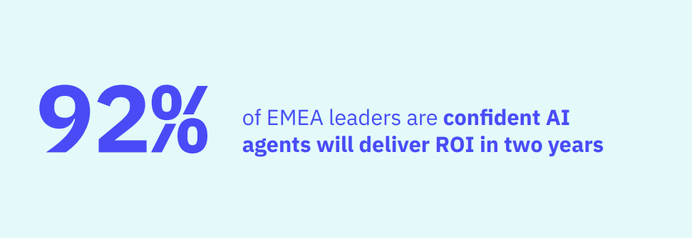 Un elemento di particolare interesse emerso dallo studio è il potenziale ancora inesplorato degli agenti di intelligenza artificiale (AI agentica). Si prevede che l’introduzione di questi agenti porterà vantaggi ancor più significativi in termini di ROI. Ben il 92% dei leader intervistati anticipa la possibilità di ottenere un ROI misurabile e quantificabile entro due anni dall’adozione di soluzioni basate su AI agentica.