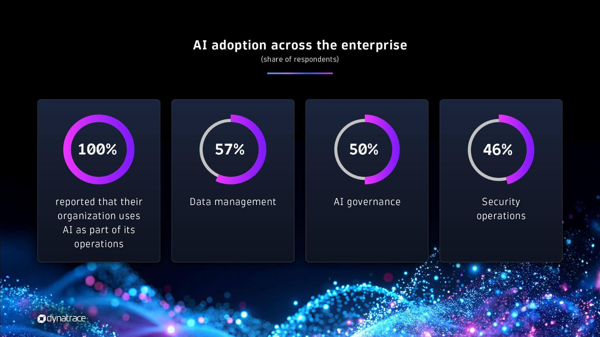 L’intelligenza artificiale è ormai una costante in ogni organizzazione di grandi dimensioni. Secondo il report “The State of Observability 2025” di Dynatrace, tutti i partecipanti dichiarano di aver implementato almeno una forma di AI nei propri processi, ma la penetrazione non è ancora uniforme. Le aziende si concentrano su aree ad alto impatto immediato, come la gestione dei dati, la sicurezza operativa e la governance etica dei modelli. In molti casi l’AI viene utilizzata per snellire i flussi di lavoro, automatizzare l’analisi dei dati e ridurre il tempo necessario per l’individuazione degli incidenti.