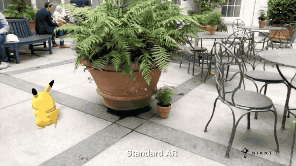 A sinistra video senza occlusion, a destra video con occlusion (credits by Niantic).