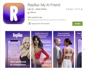 “l’intelligenza artificiale per chiunque desideri un amico senza giudizio, dramma o ansia sociale, con cui poter creare una vera connessione emotiva, condividere una risata o chattare su qualsiasi cosa si voglia, senza limiti di orario. Ogni Replika è unica, proprio come ogni persona che la scarica: reagire ai messaggi che l’amico virtuale invia lo aiuterà a imparare il modo migliore per tenere una conversazione[1].”