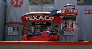 Stazioni di servizio robot Nel 2015 di “Ritorno al Futuro”, il Texaco locale di Hill Valley ha licenziato i suoi assistenti sostituendoli con un braccio robotico che riempie i serbatoi delle auto volanti.
