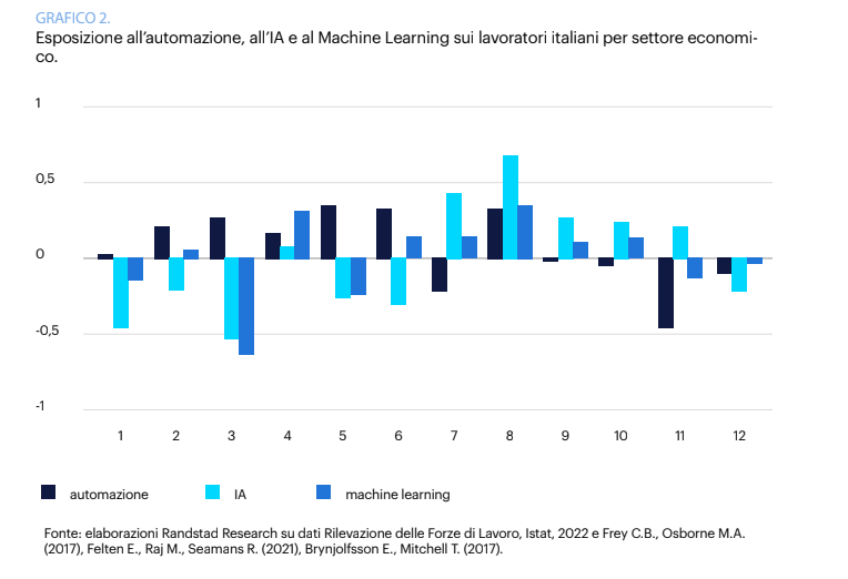 L’intelligenza artificiale sta ridisegnando il lavoro italiano. Secondo il nuovo rapporto “Intelligenza artificiale: una riscoperta del lavoro umano” della Fondazione Randstad AI & Humanities, presentato alla Camera dei Deputati, circa 10,5 milioni di lavoratori risultano altamente esposti al rischio di automazione. Si tratta di artigiani, operai e impiegati d’ufficio, ovvero quelle professioni che, più di altre, possono essere sostituite o integrate da sistemi di AI in grado di automatizzare compiti ripetitivi o cognitivi di base.