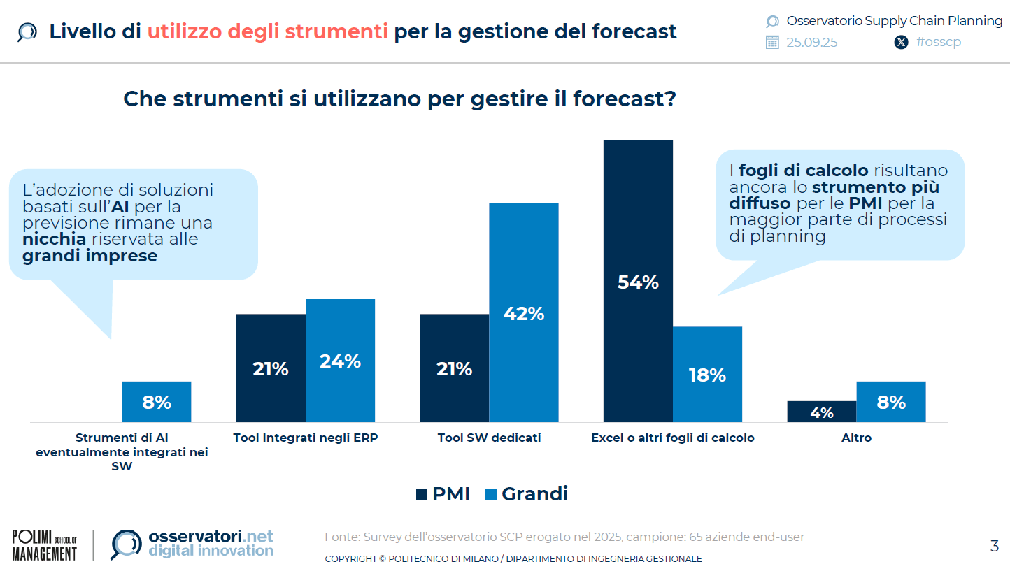 La crescente volatilità globale mette a dura prova le filiere italiane, ancora troppo reattive e poco proattive nella gestione del rischio. Secondo l’Osservatorio Supply Chain Planning del Politecnico di Milano, solo un’azienda su dieci ha piani di contingenza strutturati, mentre meno del 40% delle grandi imprese e appena il 10% delle PMI adotta l’intelligenza artificiale