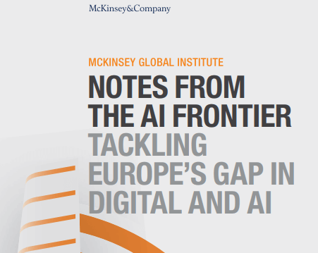 È questa la previsione del nuovo report pubblicato dal McKinsey Global Institute (MGI) e intitolato “Notes from the AI frontier: Tackling Europe’s gap in digital and AI”. I risultati di questo studio derivano dalla combinazione di autorevoli fonti di ricerca secondarie con tre sondaggi globali indipendenti a livello corporate e settoriale condotti nel 2017 e nel 2018 per valutare al meglio come le imprese anticipano il modo in cui l’AI potrebbe evolvere in Europa. La ricerca aggiorna anche il modello globale completo sulla diffusione dell’intelligenza artificiale di MGI, in particolare integrando una prospettiva sullo sviluppo degli ecosistemi di avvio di intelligenza artificiale in Europa.