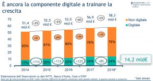 Il mercato italiano del turismo continua a crescere ormai da diversi anni, ma negli ultimi cinque anni a trainare questa crescita è stata soprattutto la componente digitale. Basti pensare che dalle piattaforme P2P transita ormai un oltre un terzo del mercato digitale degli alloggi e che le strutture ricettive fanno molto affidamento sulle OTA (Online Travel Agencies) rafforzando contemporaneamente gli investimenti ed i servizi sui canali digitali diretti (sito web, app, pagine social, ecc.).
