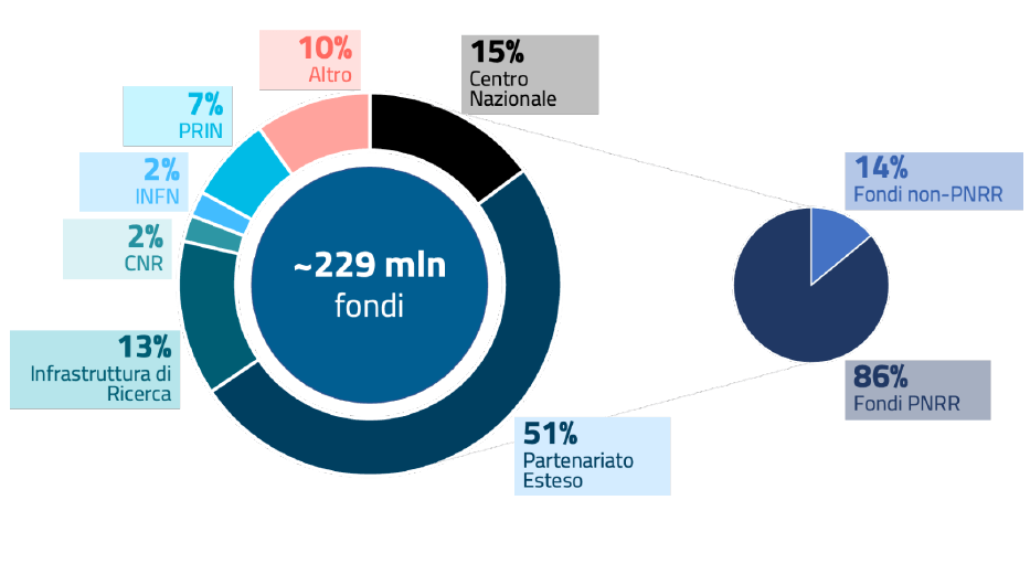 L’Italia vanta un solido e diffuso tessuto di ricerca, con una vasta rete di gruppi di ricerca e laboratori in università ed enti pubblici di ricerca (CNR, INRIM, INFN, IIT, ASI, CINECA). Il MUR ha investito 228,9 milioni di euro tra il 2021 e il 2024 in ricerca sulle TQ, di cui l’86% dal PNRR. Il PNRR ha giocato un ruolo cruciale nello sviluppo di iniziative chiave come il Partenariato esteso NQSTI, il Centro nazionale HPC, Big Data and Quantum Computing (ICSC) e l’Infrastruttura di ricerca Integrated Infrastructure Initiative in Photonic and Quantum Sciences (I-PHOQS).