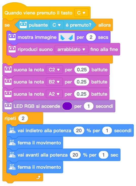 Figura 1: programmazione delle emozioni realizzata con linguaggio mBlock