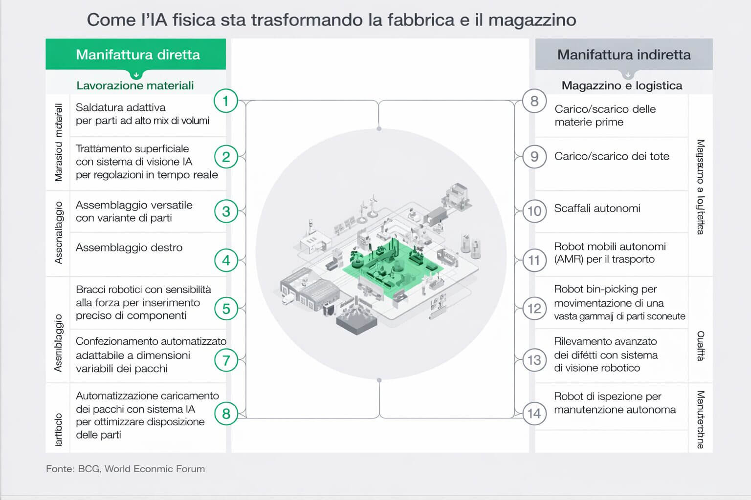 L’utilità dei robot non è più confinata alle linee produttive dell’automotive. Secondo il WEF, la robotica sta passando da contesti “ad alto volume e bassa variabilità” a scenari “ad alta variabilità e basso volume”, caratterizzati da ambienti dinamici e mutevoli.