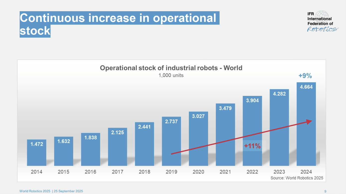 Con il termine robot oggi si indica una notevole varietà di macchine, di foggia, dimensioni, utilizzi e costi molto diversi. Dai social robot agli specializzati per le pulizie domestiche, fino a quelli chirurgici e a quelli sempre più presenti nell’industria manifatturiera. Secondo il World Robotics 2025 Report dell’International Federation of Robotics, nel 2024, per il quarto anno consecutivo, le installazioni annuali hanno superato le 500mila unità